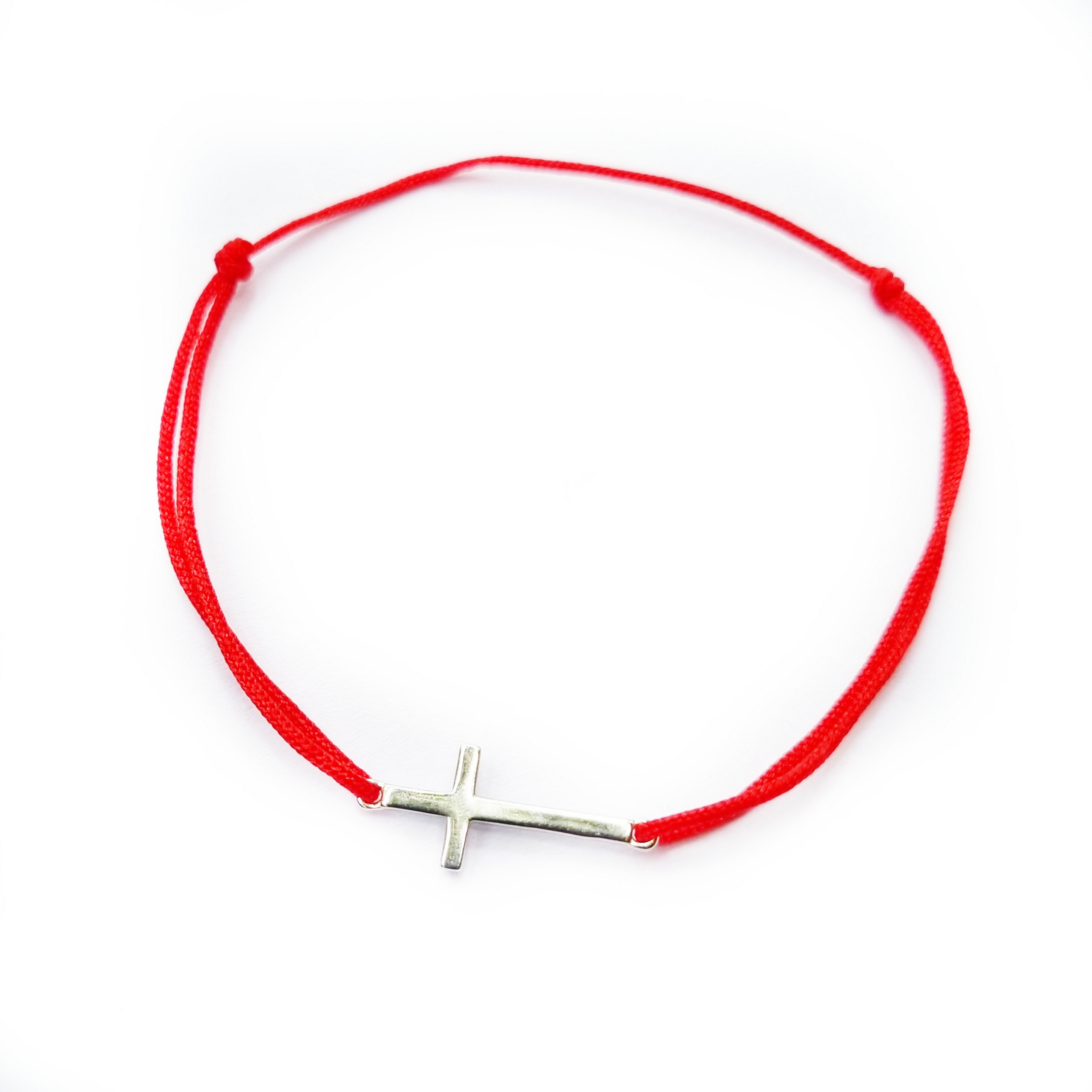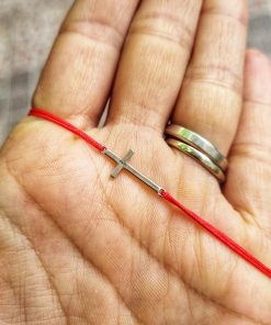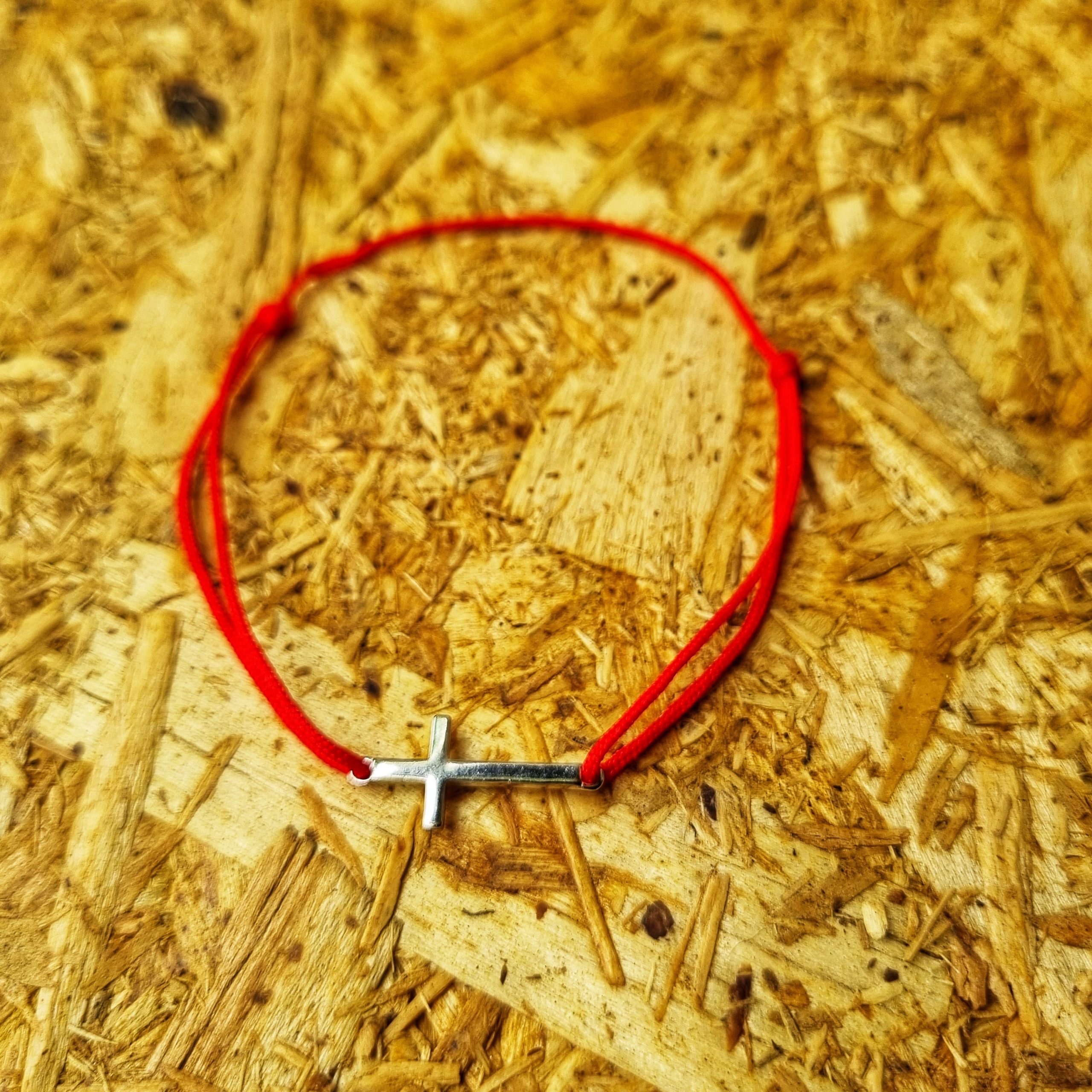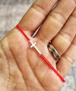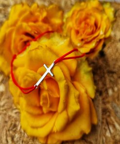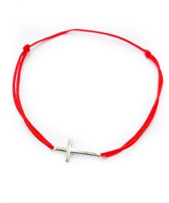Bratara reglabila din snur de matase cu noduri reglabile si charm Cruciulita din Argint 925. Charmul are ca si lungime 1,8 cm.