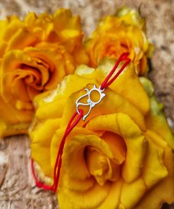 Bratara reglabila din snur de matase cu noduri reglabile si charm Pisicuta din Argint 925. Charmul are ca si lungime 12,5 mm.