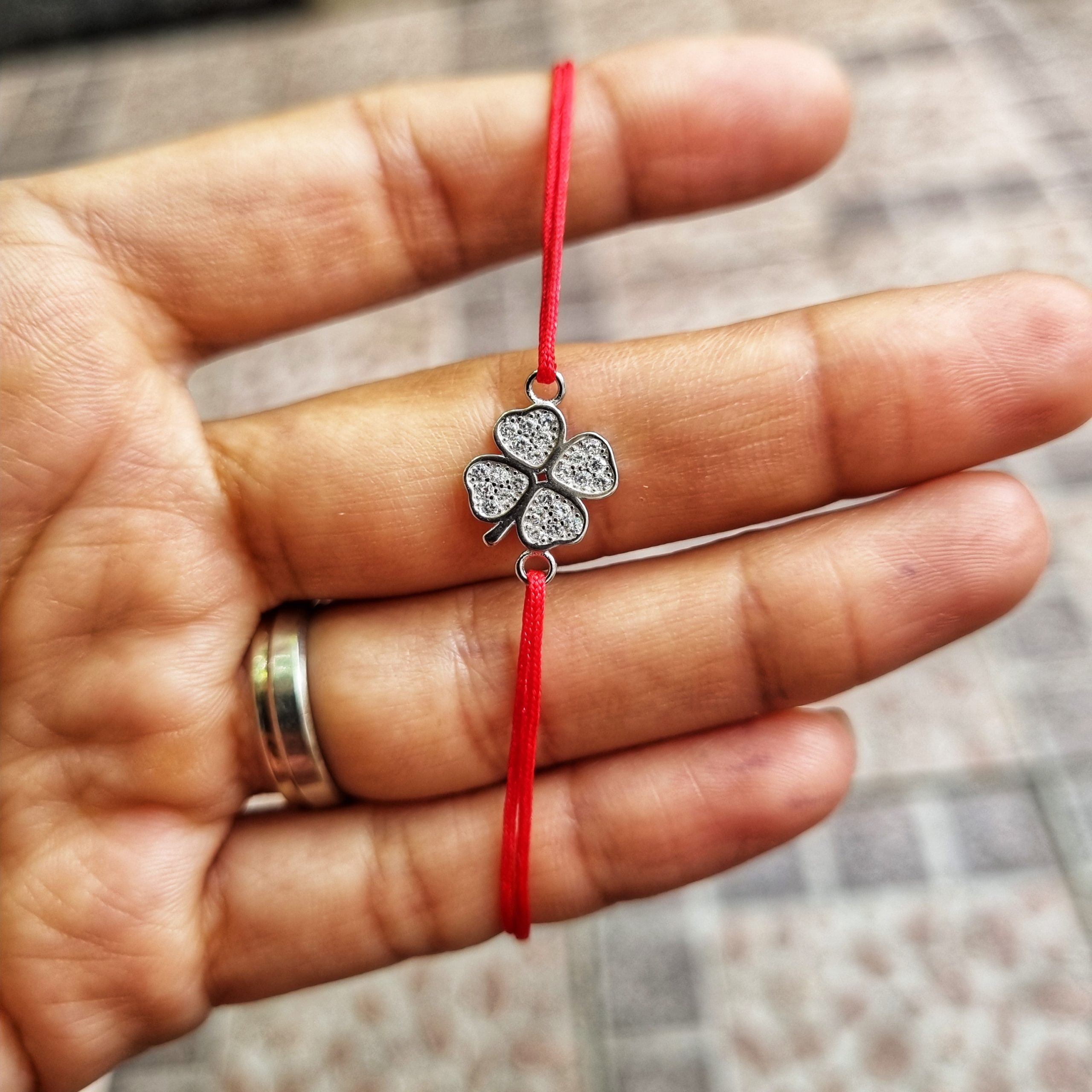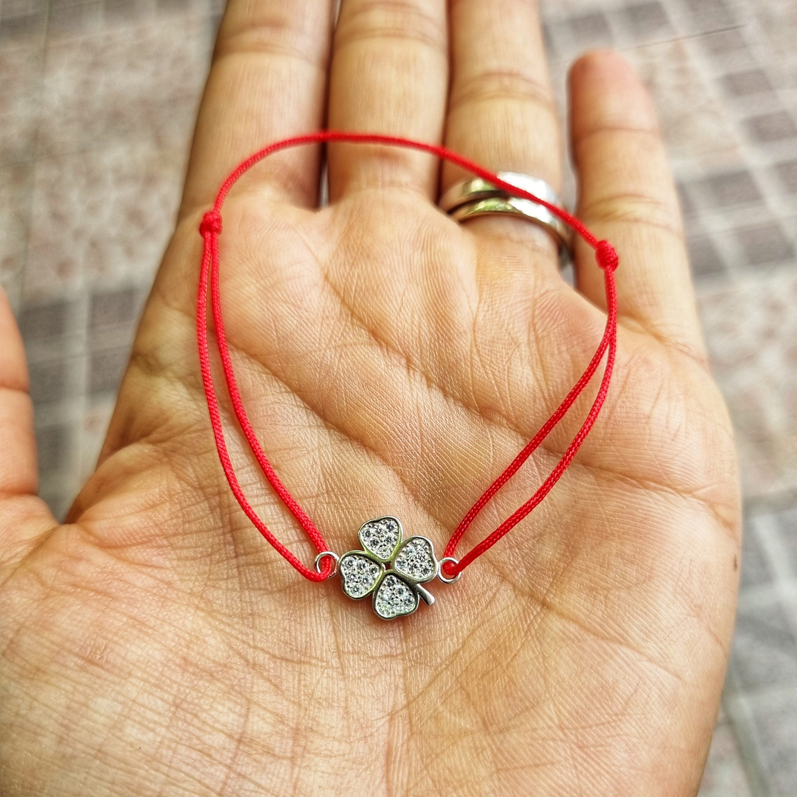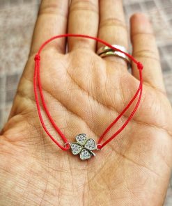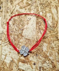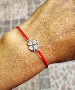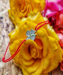 Bratara reglabila din snur de matase cu noduri reglabile si charm trifoi cu cristale zirconia din Argint 925. Charmul are ca si lungime 1,5 cm.