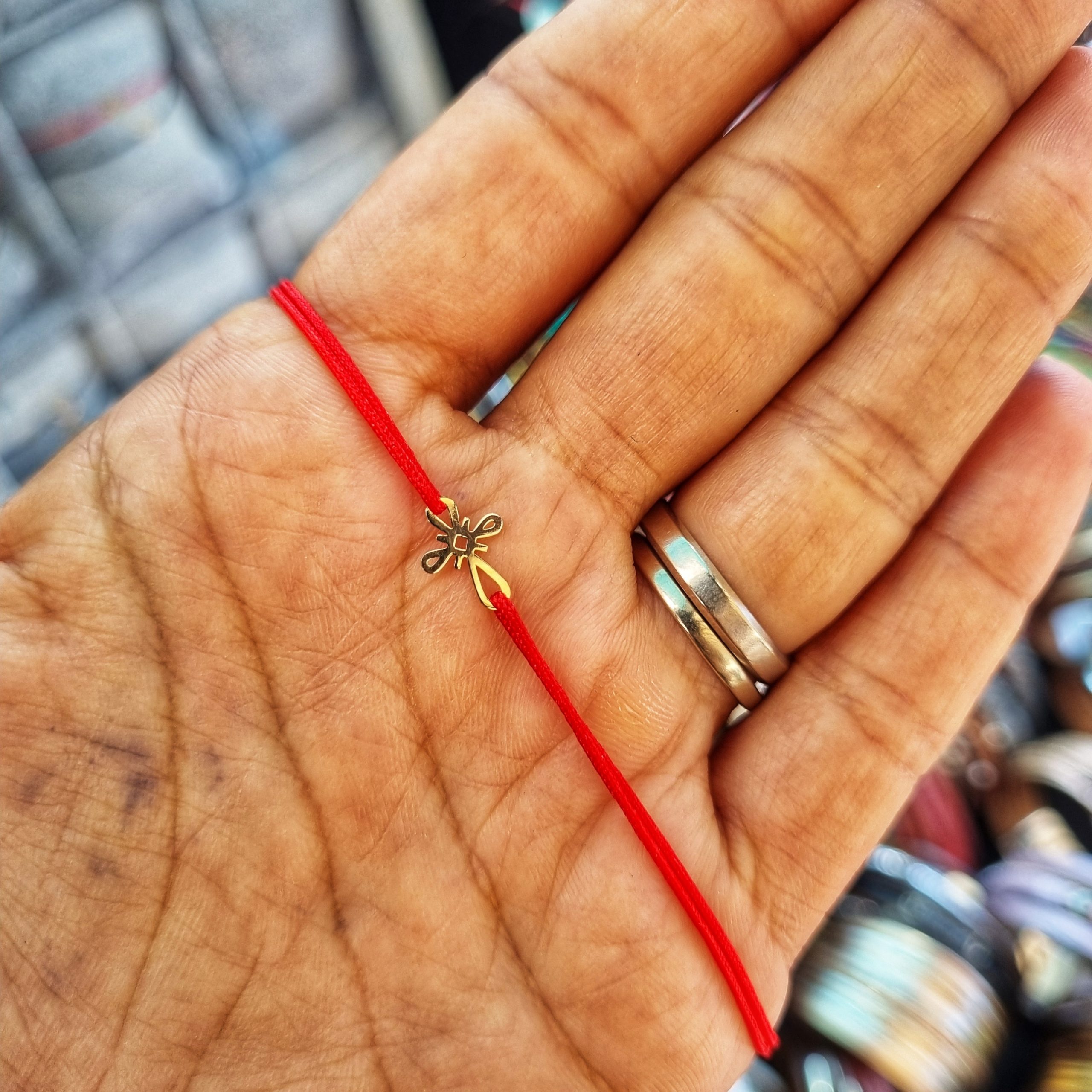 Bratara cu charm Cruciulita din aur de 14k, reglabila din snur de matase cu noduri reglabile. Perfecta pentru orice incheietura fiind reglabila.