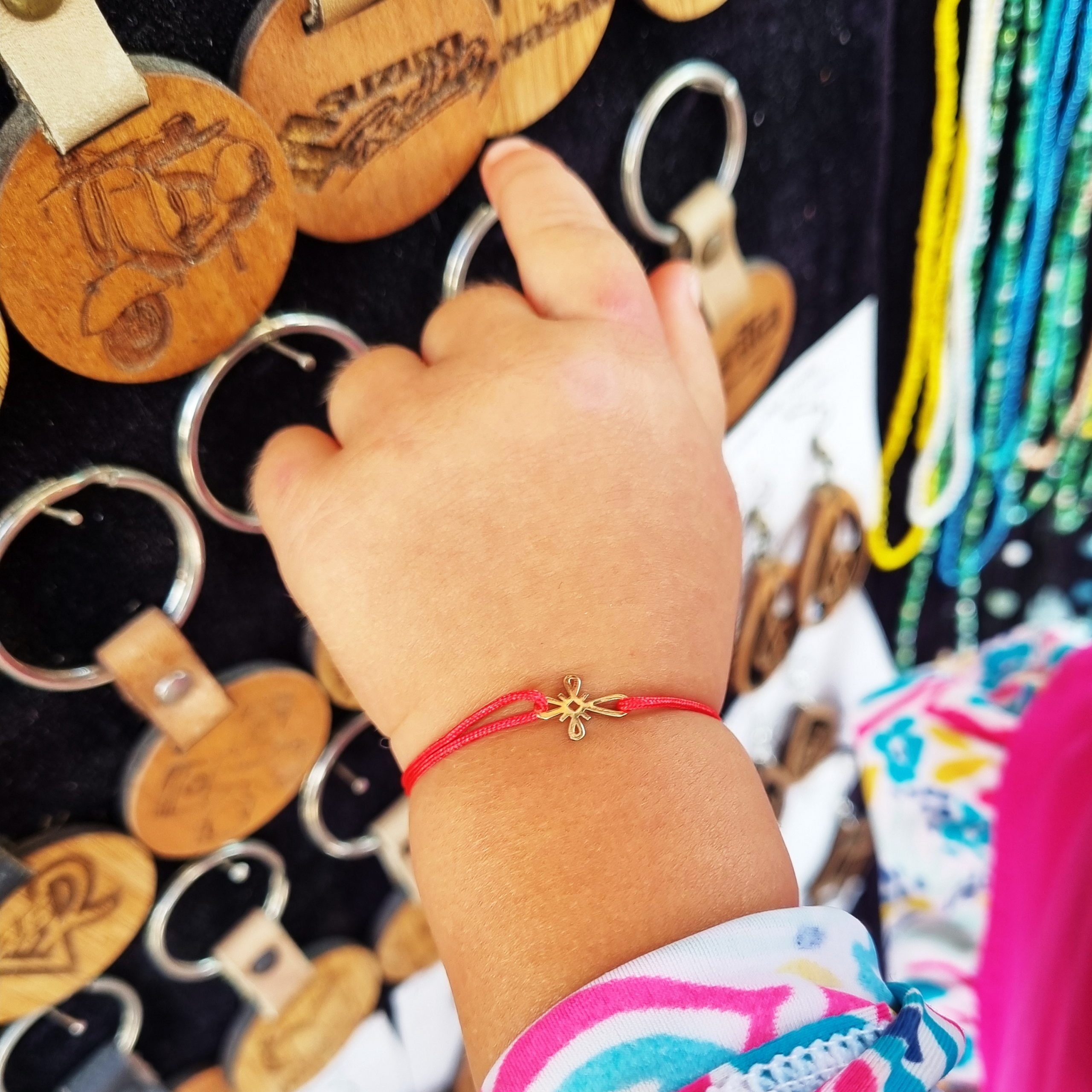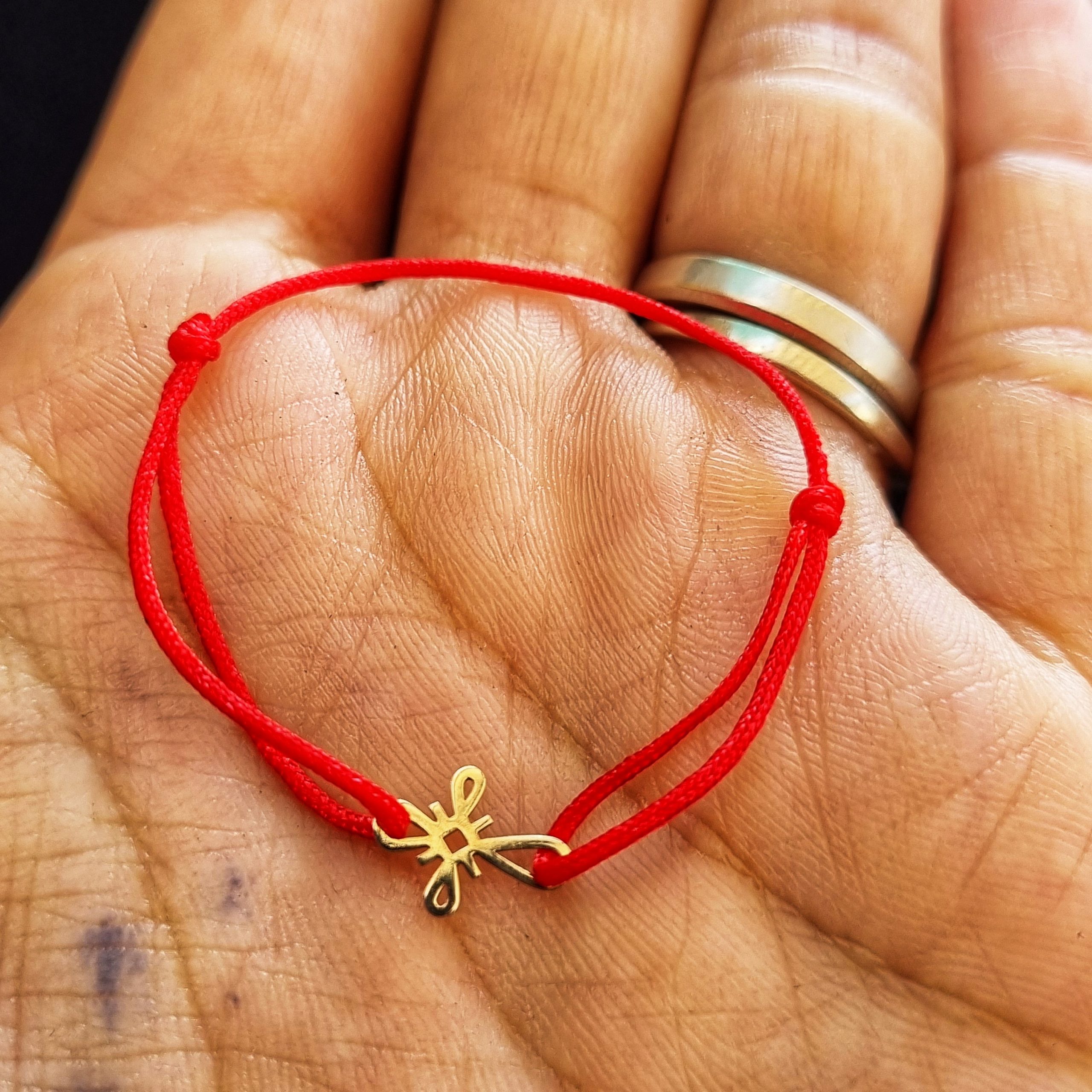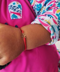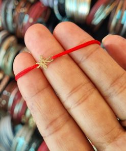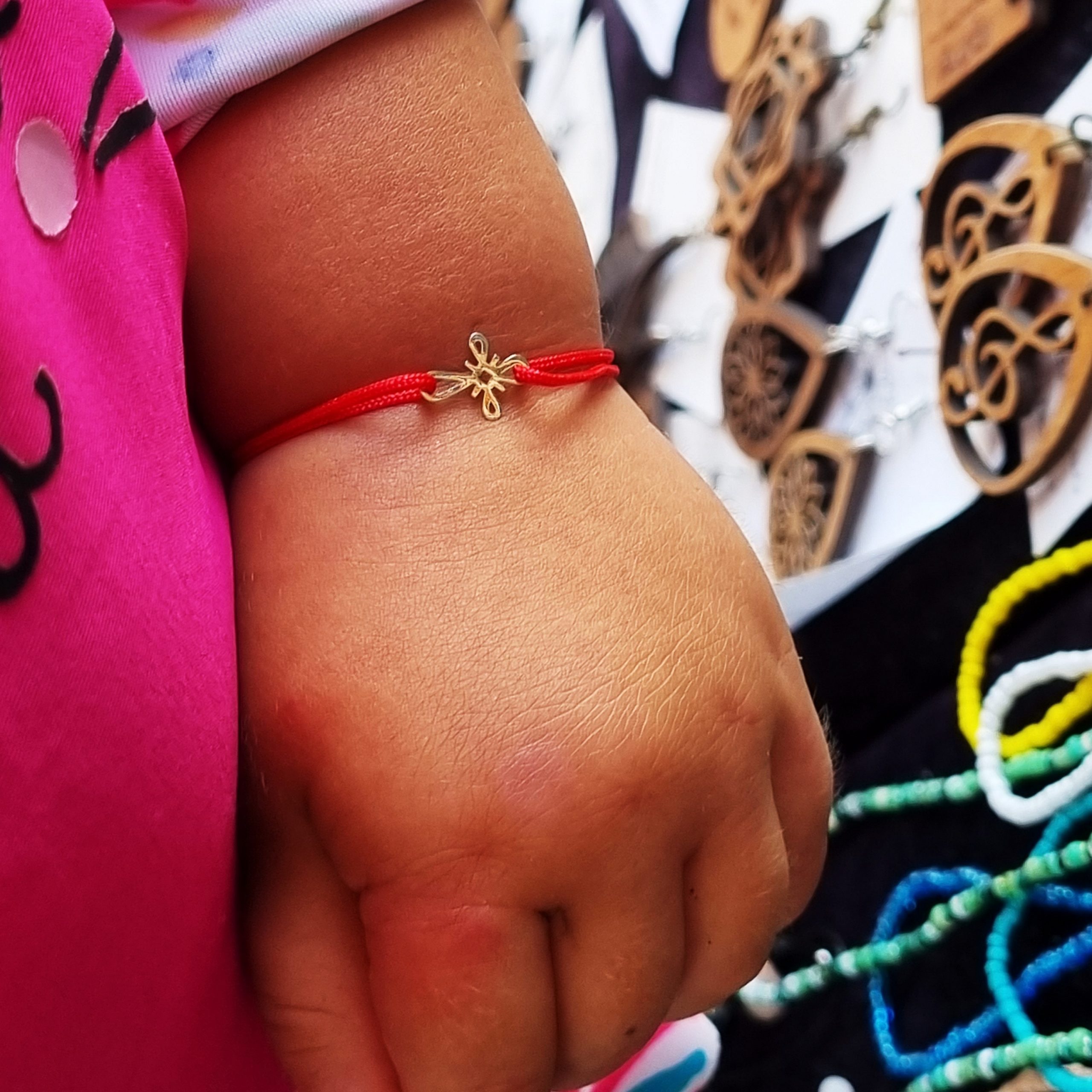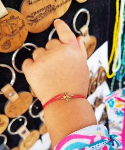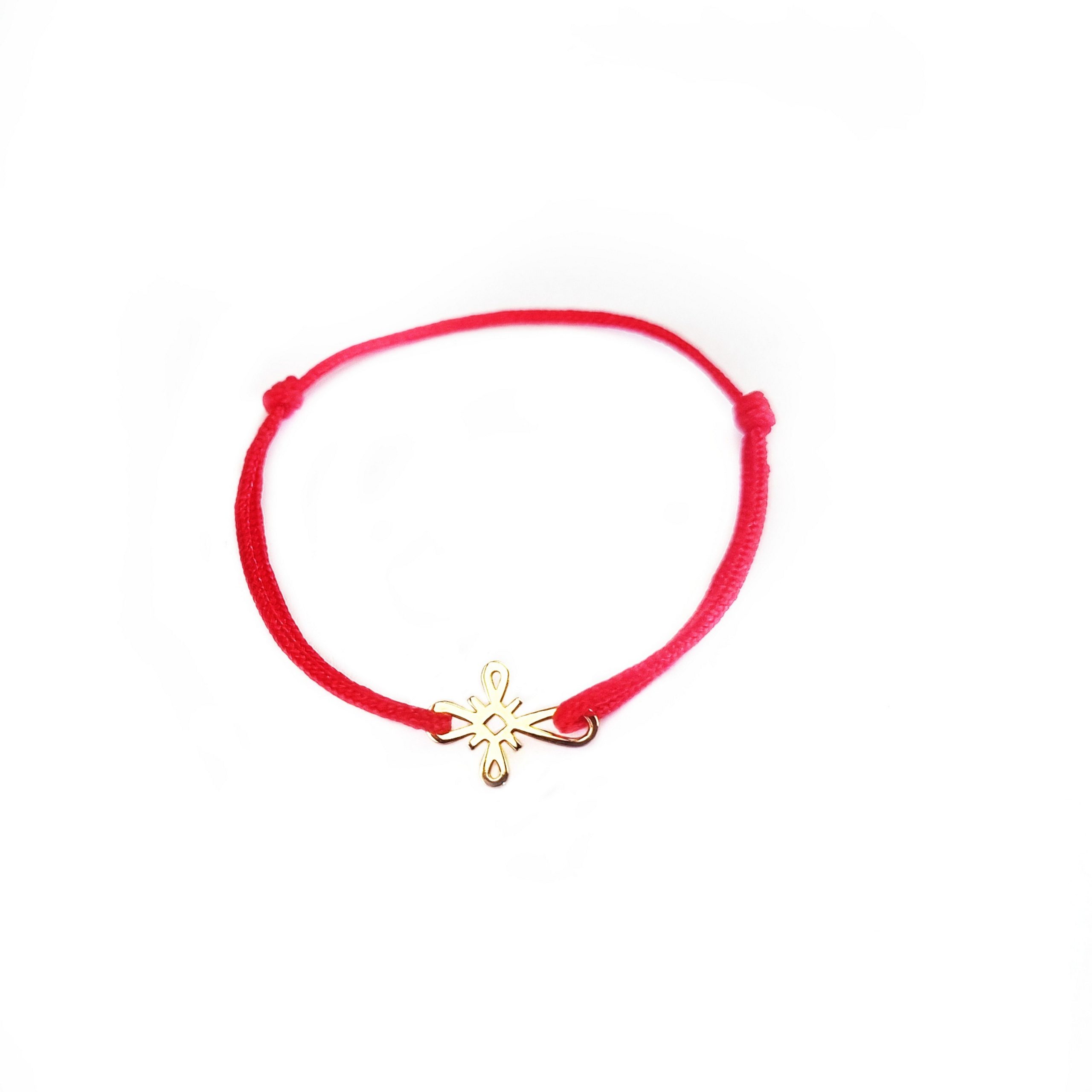 Bratara bebe cu charm cruciulita din aur de 14k, reglabila din snur de matase cu noduri reglabile. Bratarile se pot realiza atat pe snur negru cat si pe snur rosu.