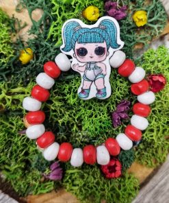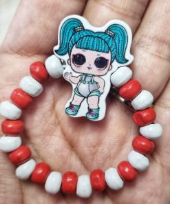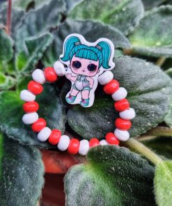 Bratara copii elastica cu fetita LOL tourquaz, cu margelute de lemn