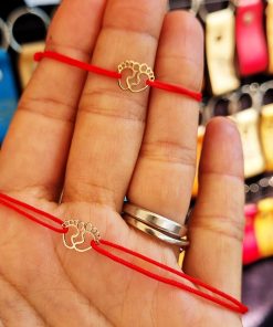 Bratara cu charm Talpite din aur de 14k, reglabila din snur de matase cu noduri reglabile. Perfecta pentru orice incheietura fiind reglabila.