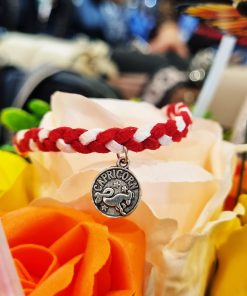 Bratara din piele intoarsa impletita eco, lucrata manual cu charm Zodia Capricorn argintiu. pe spatele banutului este scrisa personalitatea zodiei.