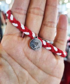 Bratara din piele intoarsa impletita eco, lucrata manual cu charm Zodia Fecioara argintiu. pe spatele banutului este scrisa personalitatea zodiei.